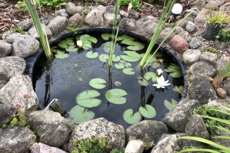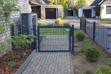 Im Jahr 2022 stand eine wichtige Veränderung an: Der Garten musste kindersicher gestaltet werden. Dabei ging es uns primär darum, das unkontrollierte Verlassen des Grundstücks zu verhindern sowie Gefahrenquellen wie den Teich und die Wärmepumpe abzusichern. Um dies zu gewährleisten, wurde ein Gartentor zwischen Vorgarten und Garten installiert und der Teich mit einem Gitter versehen.